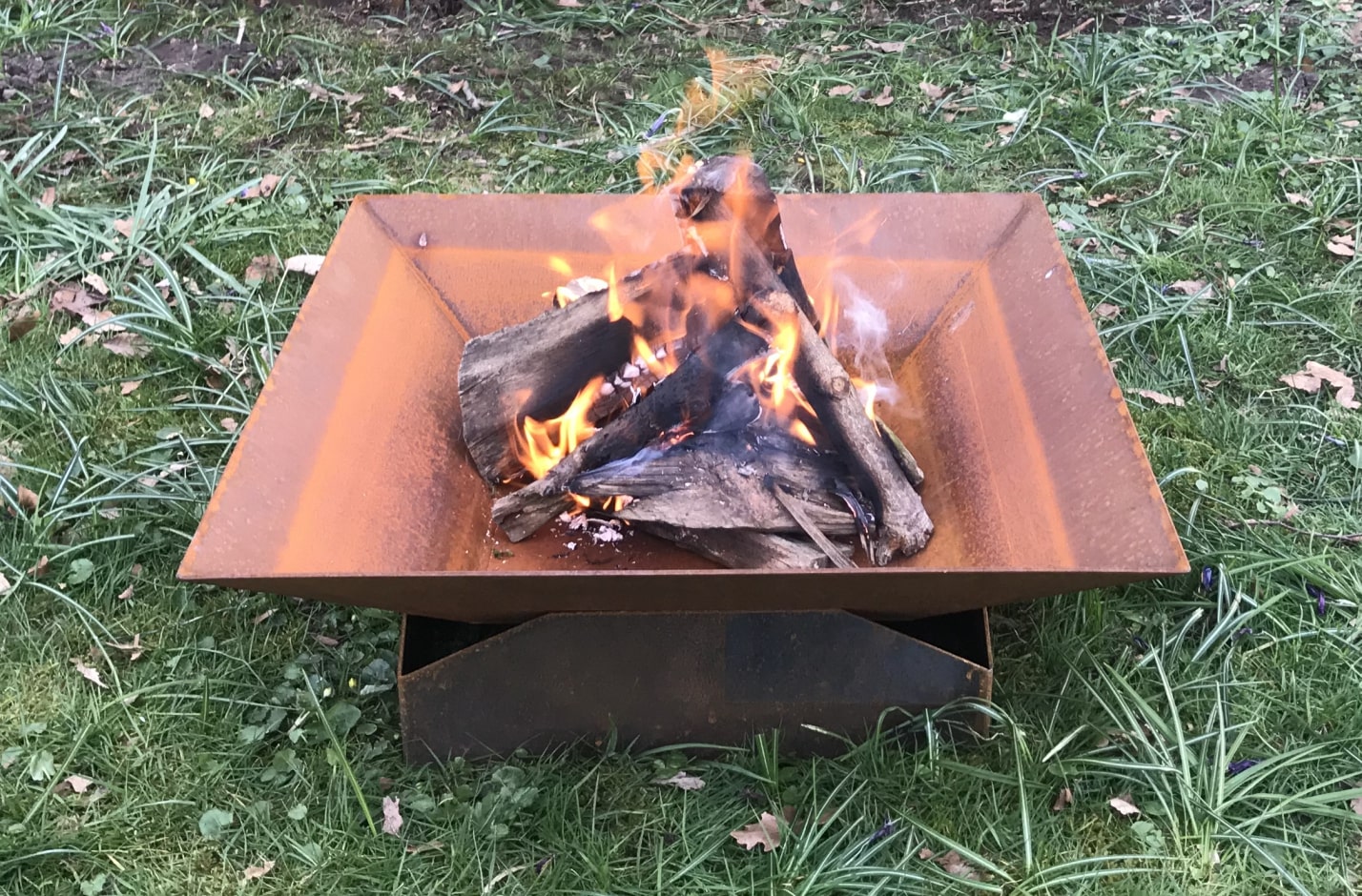 Bålfadet måler: L:60 x B:60 x H:13 cm