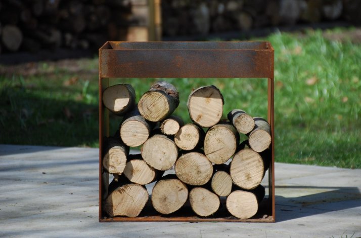 Med et brænderum til facet bålfad, har du en praktisk og funktionel opbevaring af brænde.