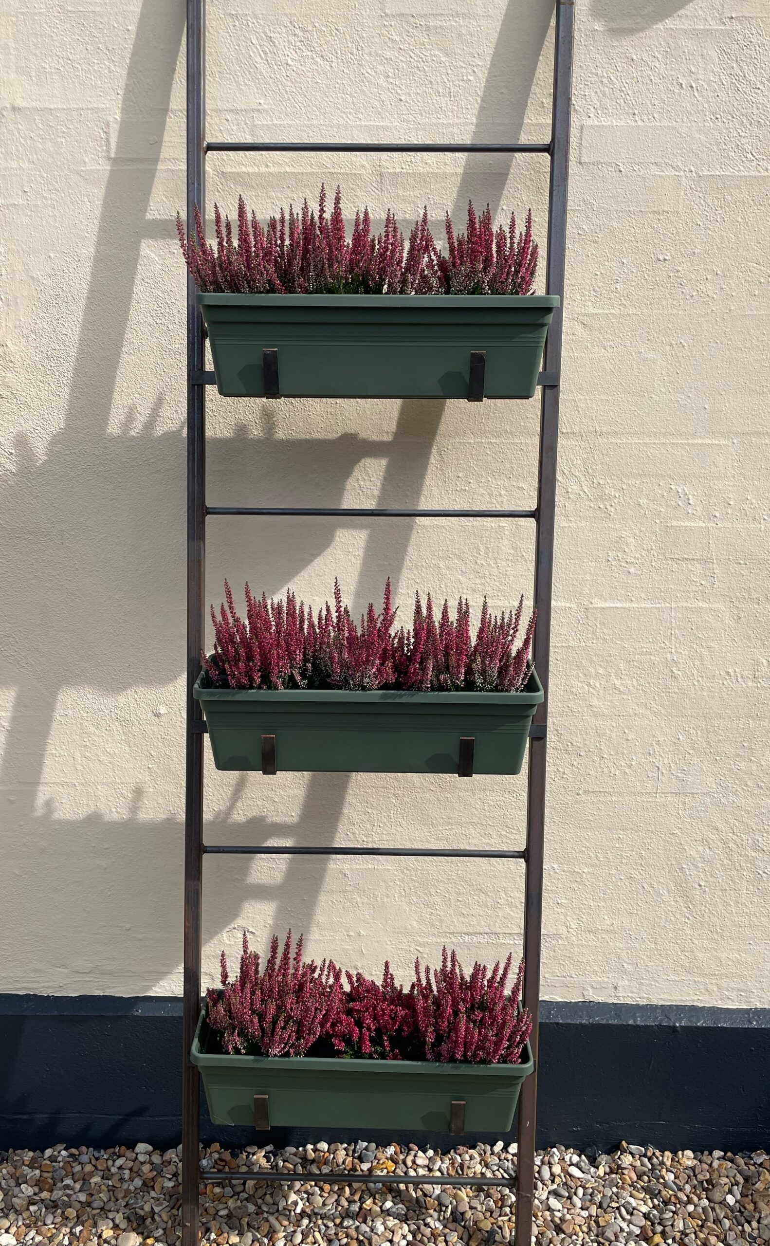 Plantestigerne fra HAVENS RUM gør det muligt at skabe højde på et minimum af plads. Plantestigerne er derfor ideelle til altaner og terrasser, hvor pladsen kan være begrænset. Det er muligt at skabe “blomsterbede” og køkkenhave på begrænset plads vha. plantekasser, som hænges på plantestigen.