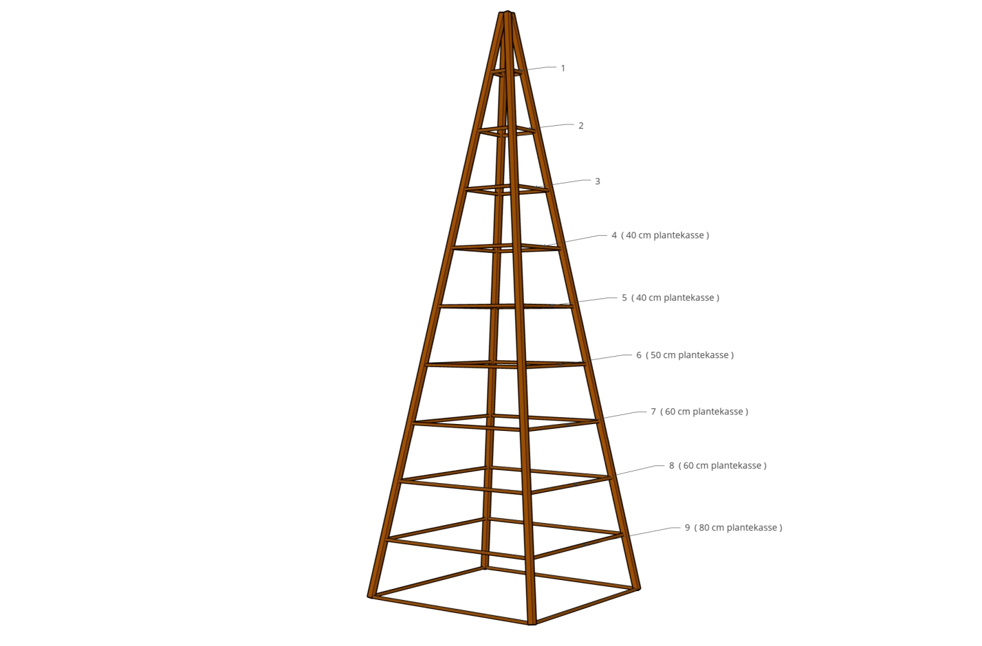 Følgende stålbøjler kan bruges til de forskellige størrelser pyramider.
